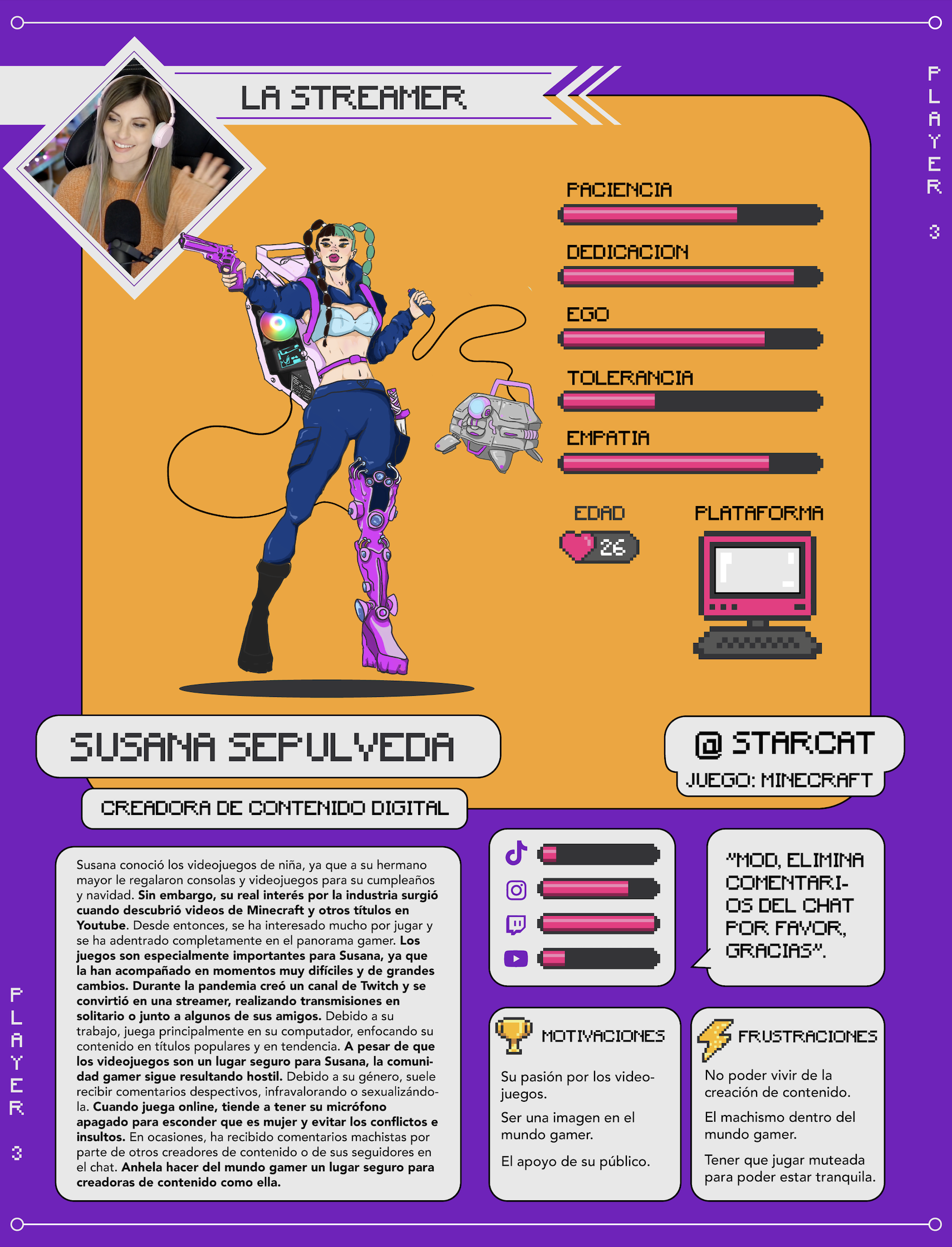 Ilustraciones Investigación – Festigame Diseño de personajes para perfiles de usuario de investigación relacionada al mundo Geek y Gamer en Chile. Ilustraciones creadas basadas en UX Research realizado para el proyecto. Servicio Ilustraciones Empresa Festigame Herramientas Photoshop